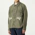定番の武骨なミリタリーシャツに遊び心をプラスした、刺繍入りワイドシャツ。