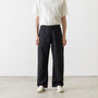 生地の程よい光沢とハリ感が上品な印象のを与え、ウエストにはゴムとドローコード入りのイージーパンツ仕立てです。