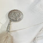 ミンクファーで仕立てた立体的なコーンと、大ぶりのコンチョボタンが印象的なデザインです。