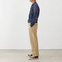 超長綿に分類される希少な”ジンバブエコットン”を使用しています。この綿花は、アフリカ南東部、標高1500mの高地で、農薬を一切使用せずに、ひとつひとつ手摘みによって収穫された最高品質のオーガニック・コットンです。この糸は、インディゴでロープ染めにされ、美しい深みのある青色を実現しています。また、綿花から作られた細く丈夫なムラ糸は、しなやかで耐久性に優れており、着用者の動きに合わせて自然な風合いを生み出します。このデニムジャケットは、最高品質のオーガニック・コットンを使用しており、環境にも配慮した生地です。