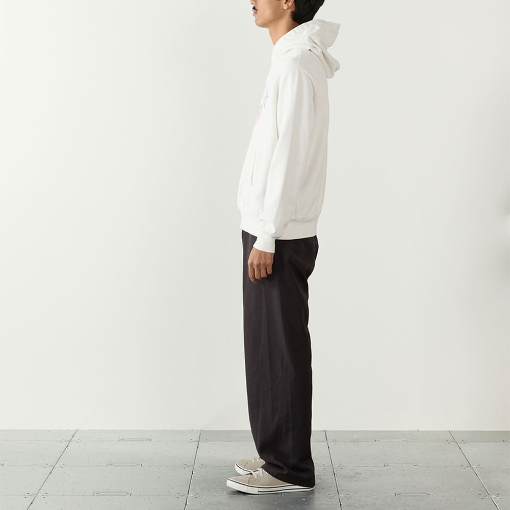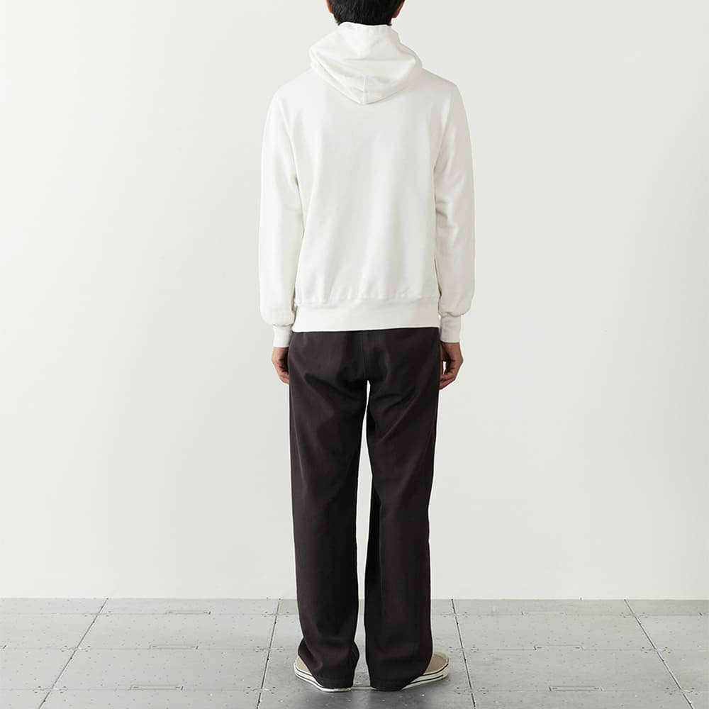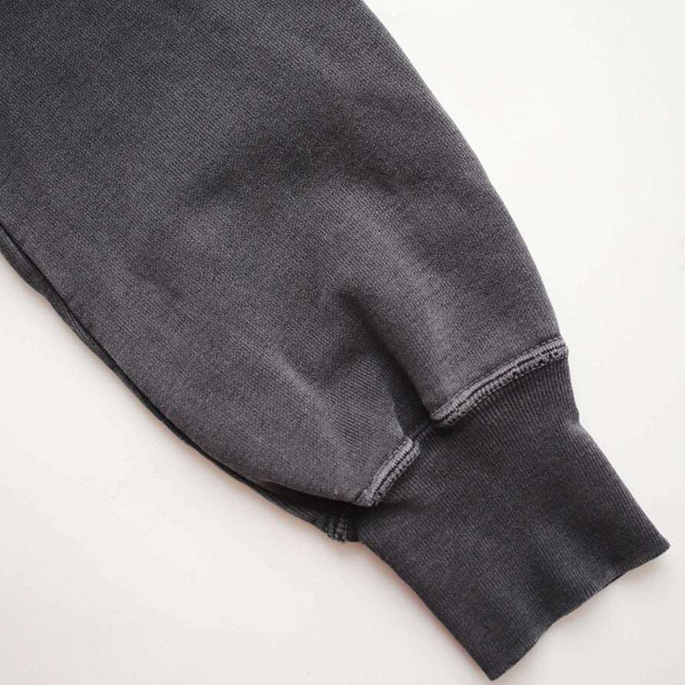 さらに、このスウェットにはレミレリーフ独自の「SP加工(スペシャル加工)」を施しています。この加工は、1930年代から60年代後半に使用されていた直接染料や硫化染料の退色プロセスを再現したもので、酸素と染料を結合させて時間をかけて自然に退色させています。薬品やバイオ加工を使用せず、古着本来の経年変化によるダメージ感に近い仕上がりを実現。使い込むほどに本物のヴィンテージのような風合いを楽しめる一着となっています。
