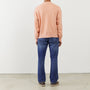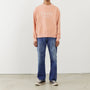 REMI RELIEFのSP加工はこの自然の原理を再現して、昔ながらの直接染料を使い酸素と結合させて、ゆっくりと長時間かけて染料を退色させています。ボディもそれなりのダメージをおいますが、薬品を入れたりバイオによる生地を無理に融かしたりするような加工とは違い、古着本来の経年によるダメージにもっとも近い雰囲気で、着続けていくほどに本当の古着と見分けがつかなくなるよう自然な加工を施しています。