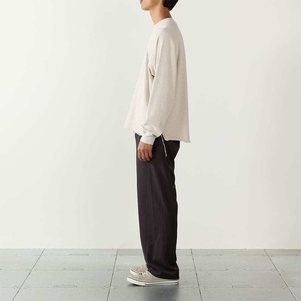 やや肉厚な天竺素材を使用した、リラックス感のあるラグランスリーブのロングスリーブTシャツ。