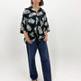 フロントからバックにかけて柄がつながるように配置されており、どの角度から見ても存在感のある一着です。