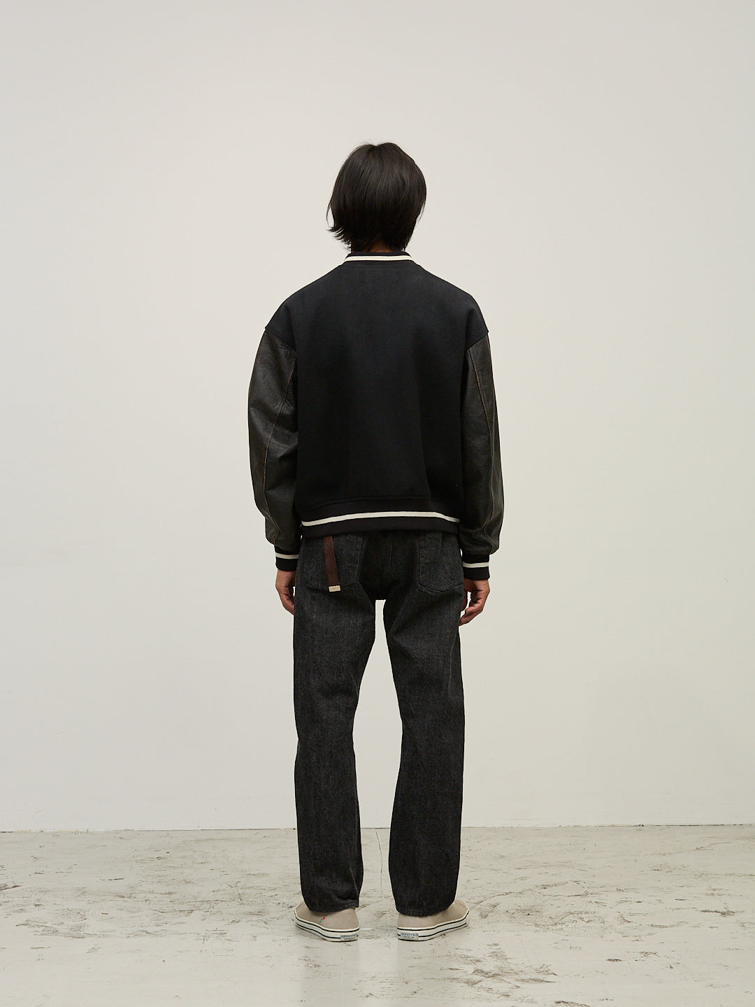 중후한 느낌의 멜튼 원단과 가죽 슬리브의 조합이 빈티지 스타쟌의 분위기를 재현하고 있습니다.