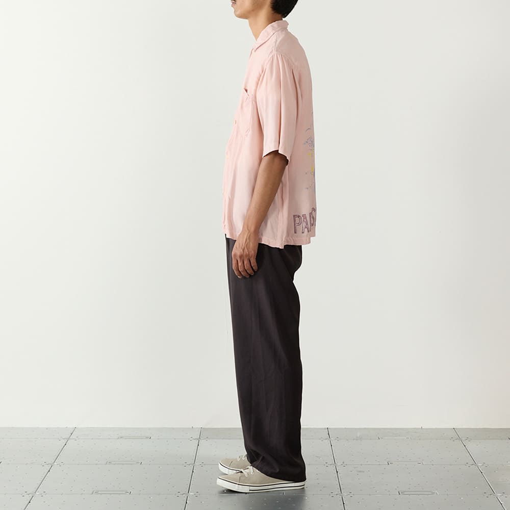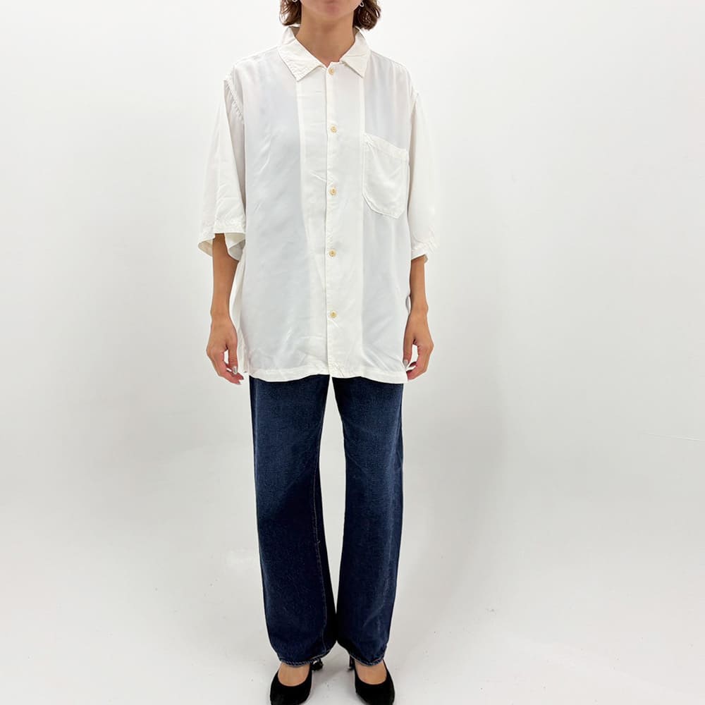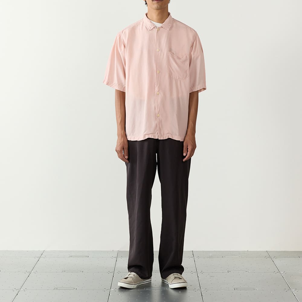 レーヨン特有の落ち感により、動きに合わせて表情が生まれ、シンプルなボトムスと合わせるだけでも雰囲気のある着こなしが完成します。