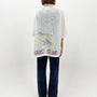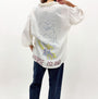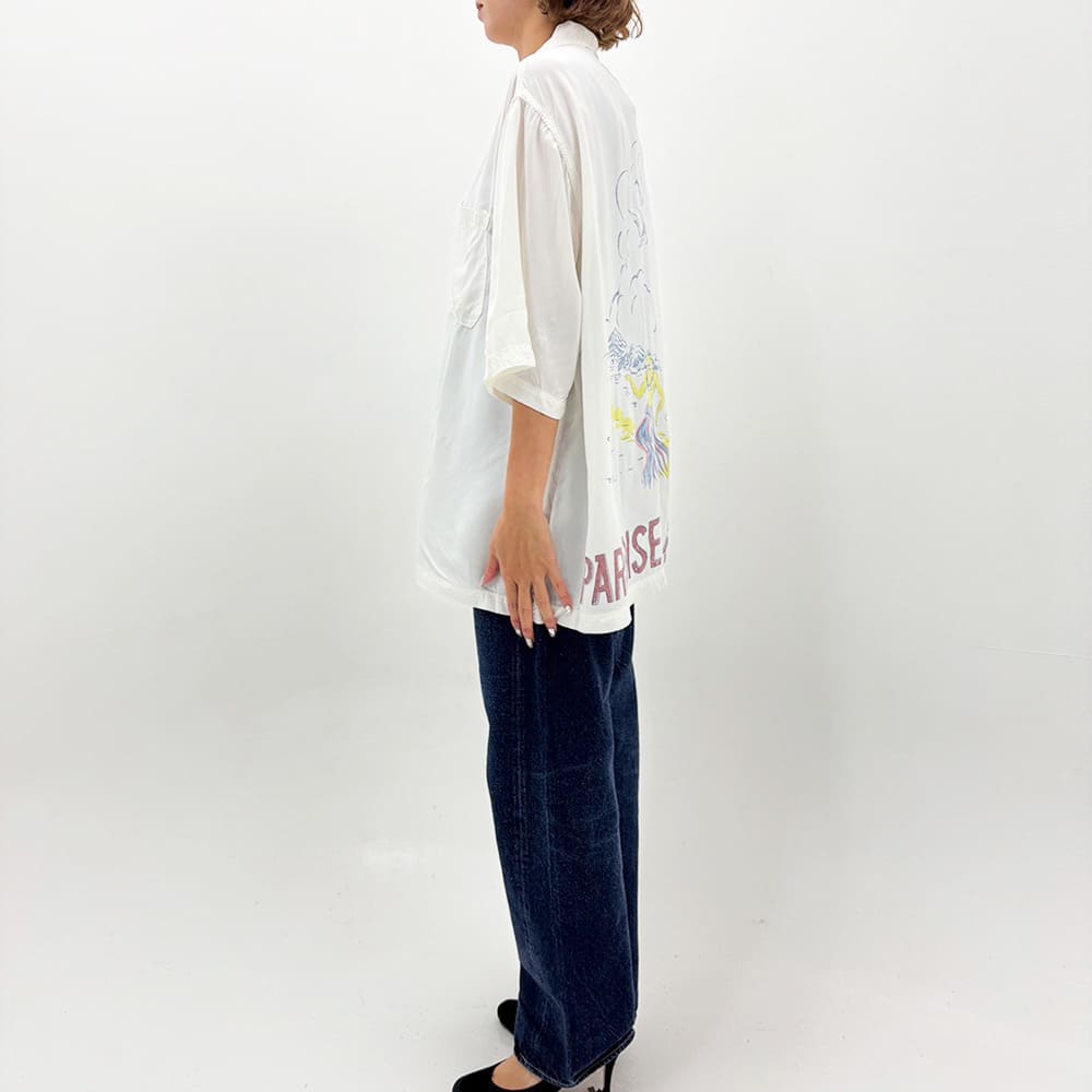裾まわりにかけて広がるヨットモチーフの総柄は、どこかヴィンテージのアロハシャツを思わせるノスタルジックな雰囲気。