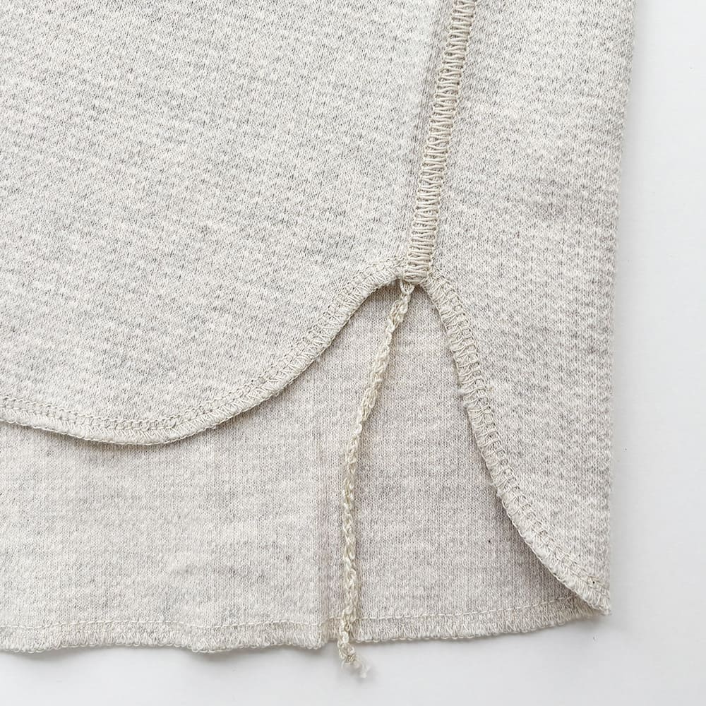 소재에는 부드러운 부풀어 오른 부드러운 피부 ざわり을 겸비한 코튼 와플 원단을 사용.스웨트보다 가볍고, 론 T보다 제대로 된 존재감이있어, 이너에도 한 장 착용에도 사용할 수있는 절묘한 균형감입니다.