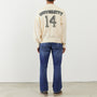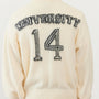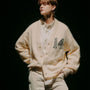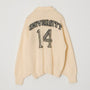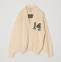 A cardigan made of fluffy knit with numbering.