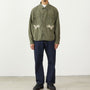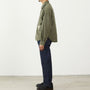 Based on a classic military shirt, it has been reconstructed into a wide silhouette.